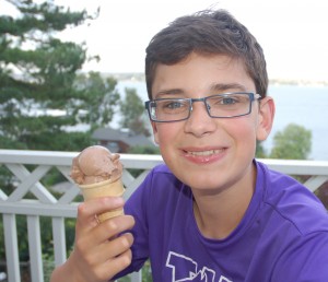 Recently, after enjoying some fresh goat cheese on a bagel, I thought to myself, “This goat cheese is not a bad substitute for cream cheese.” Then, because I so often think of sweets, I thought of cheese cake and wondered how a cream cheese ice cream might taste and then I wondered about the potential of goat cheese ice cream. After a quick google search, I found a goat cheese recipe that calls for egg yolks, milk, goat cheese, and no cream. The recipe pointed out that you need a fresh, non-gamey tasting goat cheese, for the ice cream to come out well. At this time of year, my freezer is overflowing with such goat cheese, so I gave it a try. I modified the recipe by adding four ounces of chocolate. The result was what I’d been hoping for — rich, creamy ice cream.