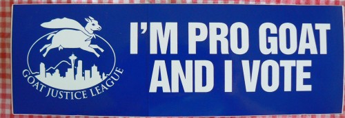 When Emily Dickinson wrote these lines, there was no Goat Justice League. Now there is, so now there’s no need to be nobody. For only $39.95, you can become a member of the exclusive Goat Justice League.